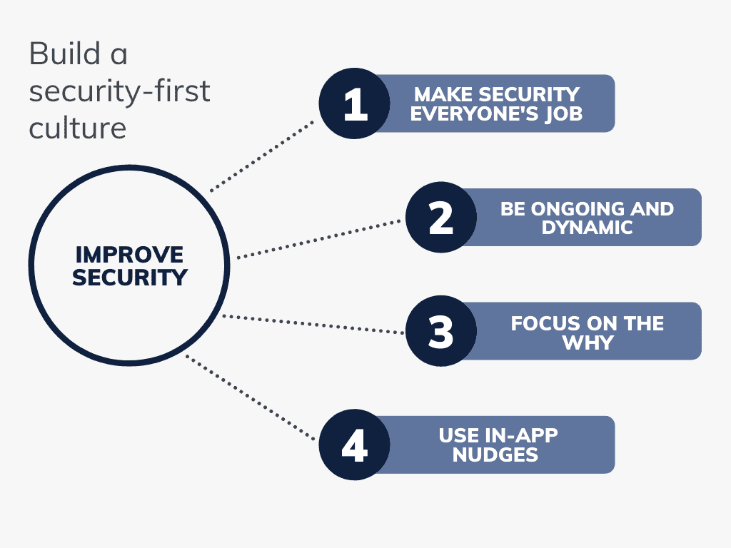 Another way to encourage a security-first mindset is to take a top-down approach. If you can get your executives to champion cybersecurity at the board level and mention it in company-wide meetings, your employees will quickly start to take note.