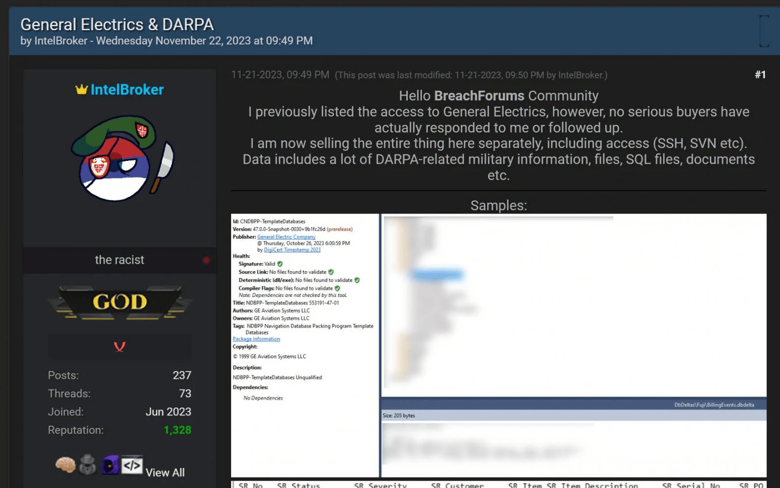 While GE has not officially validated the legitimacy of the reported breach, given IntelBroker’s history, there’s a considerable likelihood that the data theft is indeed genuine.